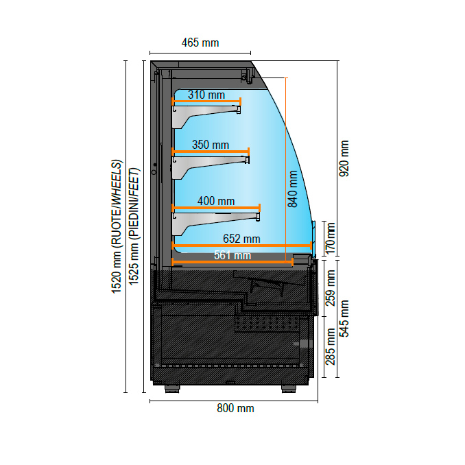 Tecnodom EVO self er en moderne og praktisk kjøledisk utviklet for selvbetjening i kiosk, bensinstasjon, dagligvare, butikker, hoteller, etc. Den gir kundene enkel tilgang til ferdigsmurte baguetter, wraps, yoghurt, brus og andre kalde produkter – samtidig som varene holdes friske, hygieniske og delikate.